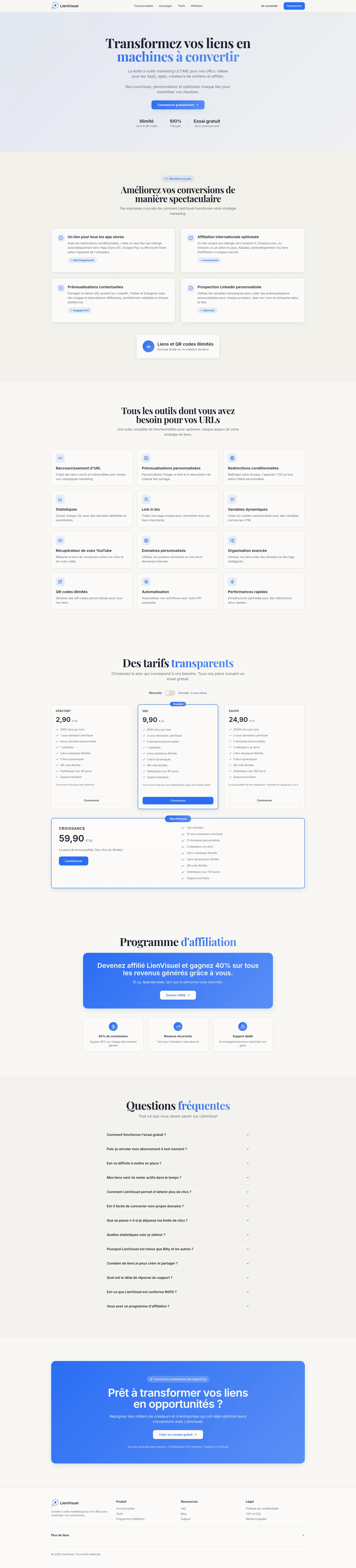 LienVisuel a une proposition de valeur claire et des fonctionnalités qui tiennent la route, mais ta page d'accueil manque cruellement de preuve sociale crédible et tes CTA sont plus fades qu'un bouillon de légumes sans sel. Tu as les bases d'un bon SaaS, maintenant il faut que ta landing page arrête de te saboter !.