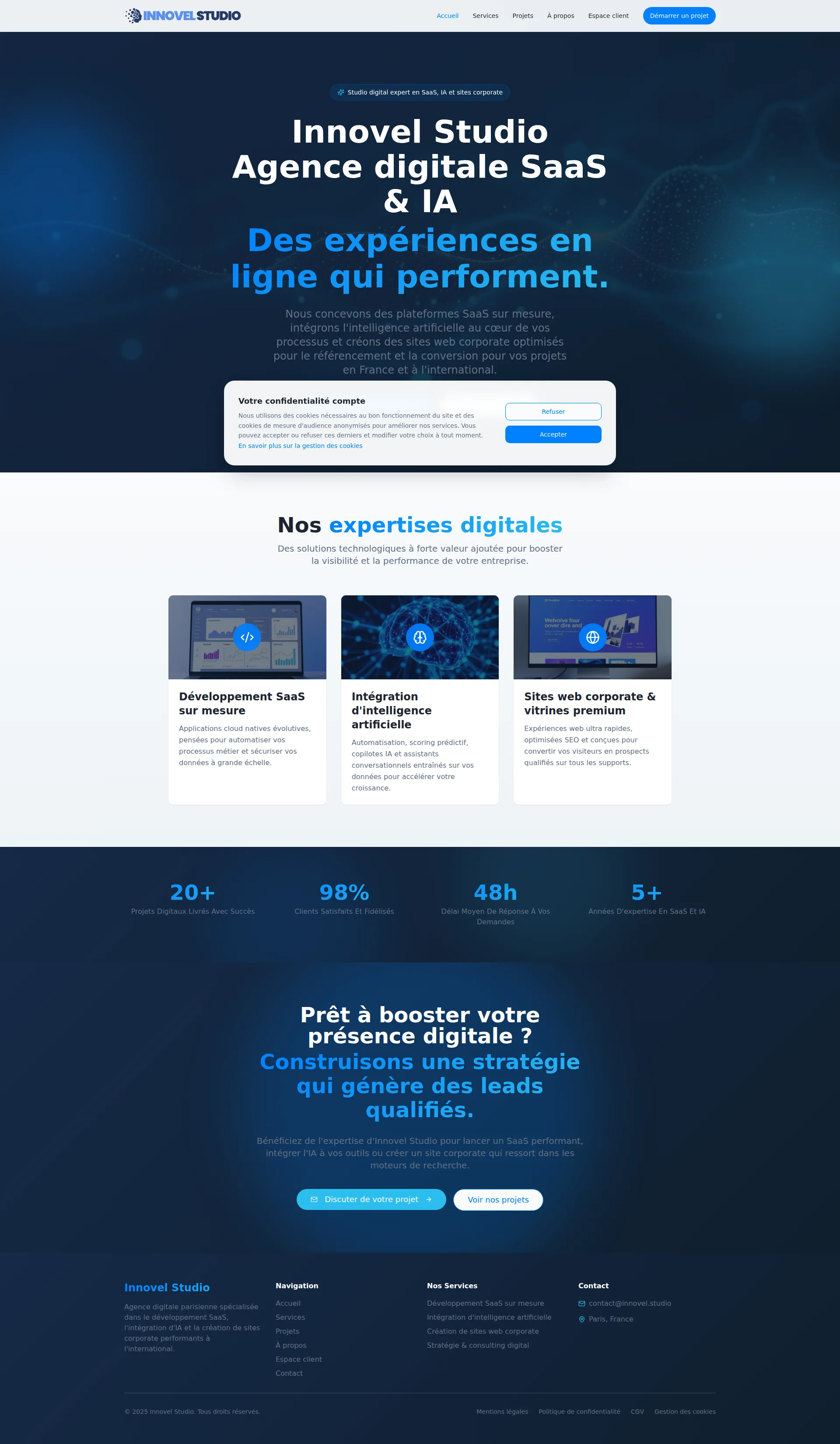 Innovel Studio Agence digitale SaaS & IA Des expériences en ligne qui performent.