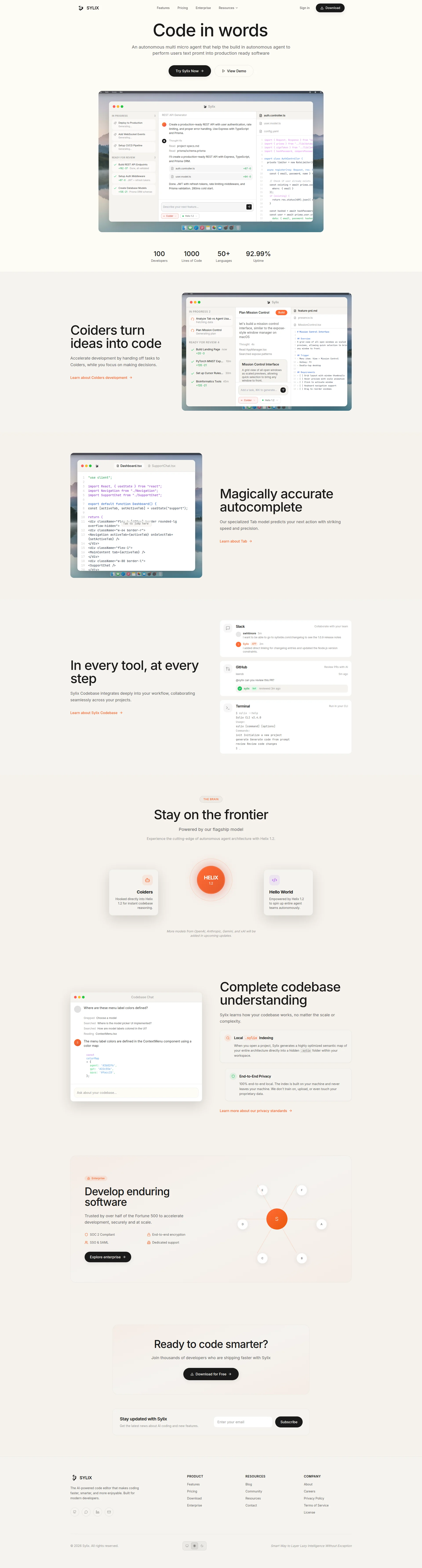 - Zero competitive differentiation in the hero — there's not a single word explaining why someone should choose Sylix over Cursor, GitHub Copilot, or Windsurf, and in a market THIS crowded, that's a death sentence